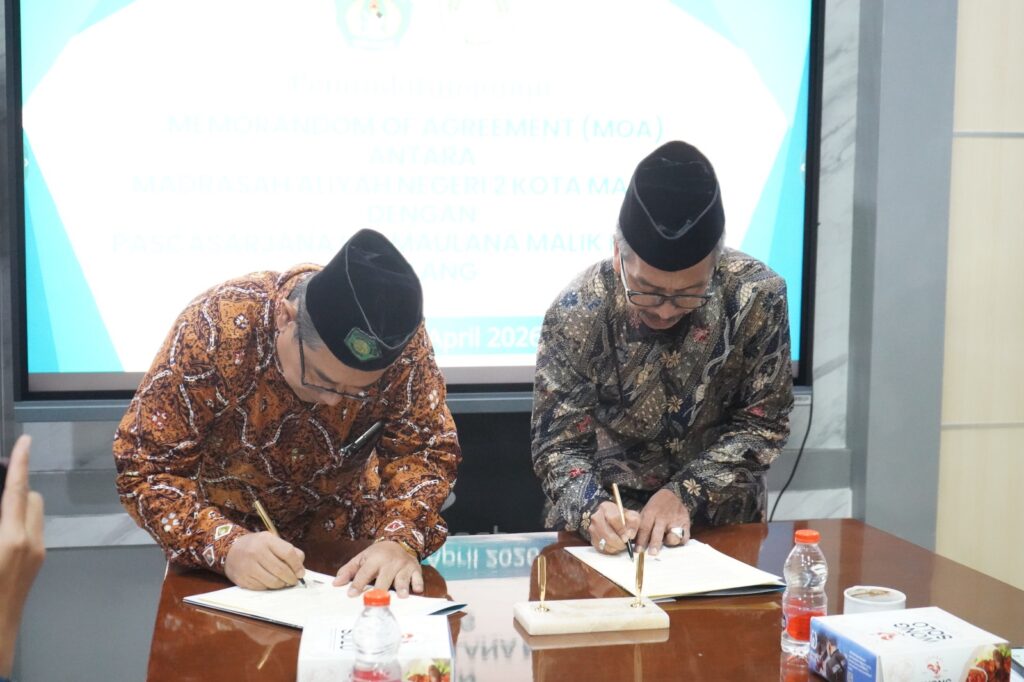 Batu, 10 April 2026 – Upaya memperkuat sinergi antara pendidikan menengah dan pendidikan tinggi kembali diwujudkan melalui penandatanganan Memorandum of Agreement (MoA) antara Madrasah Aliyah Negeri 2 Kota Malang (MAN 2 Kota Malang) dengan Pascasarjana UIN Maulana Malik Ibrahim Malang. Kerja sama ini menjadi tonggak penting dalam membangun kesinambungan pendidikan yang terarah, terintegrasi, dan berorientasi pada peningkatan mutu sumber daya manusia.