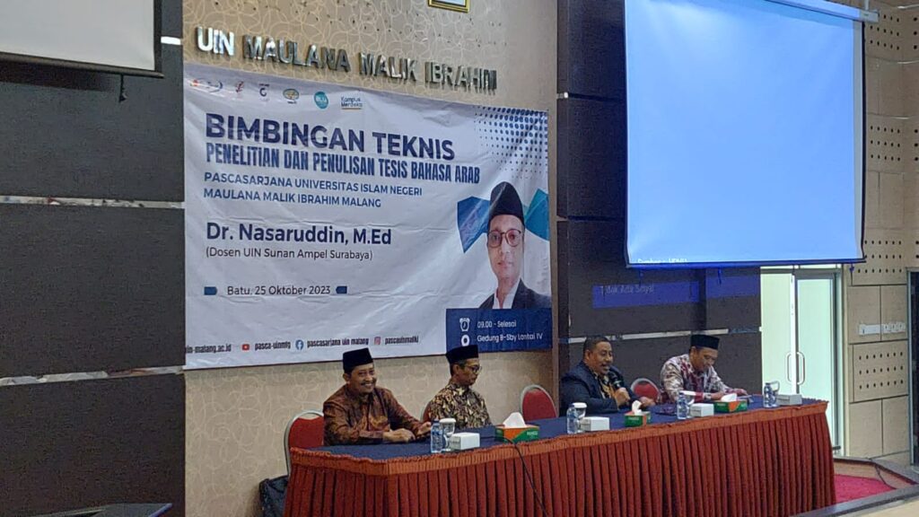 Batu, 25 Oktober 2023 – Pascasarjana UIN Maulana Malik Ibrahim Malang menggelar sebuah acara dahsyat pada Rabu, 25 Oktober 2023. Bertempat di aula Gedung B, lantai 4, acara tersebut merupakan Bimbingan Teknis (Bimtek) Penelitian dan Penulisan Tesis Bahasa Arab yang dihadiri oleh lebih dari 80 mahasiswa S2 Pendidikan Bahasa Arab.