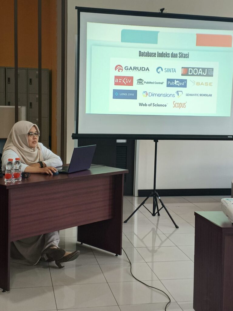 Tidak hanya itu, peserta juga diperkenalkan dengan berbagai platform jurnal elektronik, cara mengakses full-text article, serta tips dalam mengevaluasi kualitas sumber informasi. Penjelasan yang sistematis dan disertai dengan contoh langsung membuat peserta lebih mudah memahami materi yang disampaikan. Selama sesi berlangsung, peserta terlihat aktif bertanya dan berdiskusi terkait kendala yang sering mereka hadapi dalam mencari referensi ilmiah.